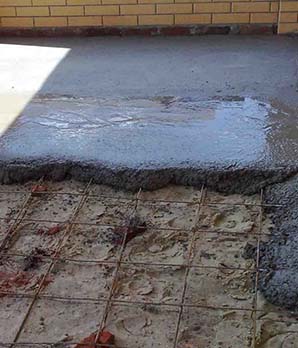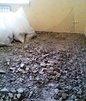 На следующем этапе следует залить пол разведенным водой цементом, для того, чтобы керамзит не сдвигался при укладывании цементной кладки. Далее может устанавливаться металлическая сетка, которая помогает избежать деформации покрытия при повышенных нагрузках. Особенно это актуально для промышленных и складских помещений.